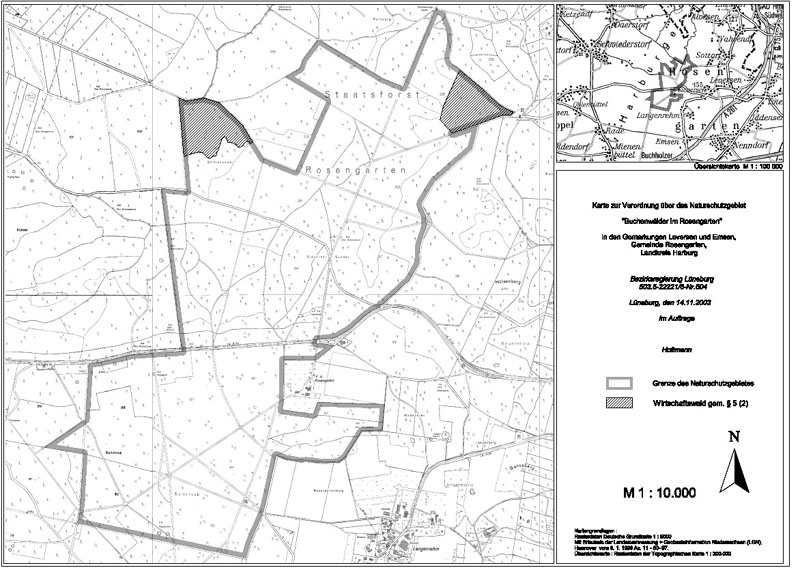 Amtliche Verordnungskarte zum Naturschutzgebiet "Buchenwälder im Rosengarten"
