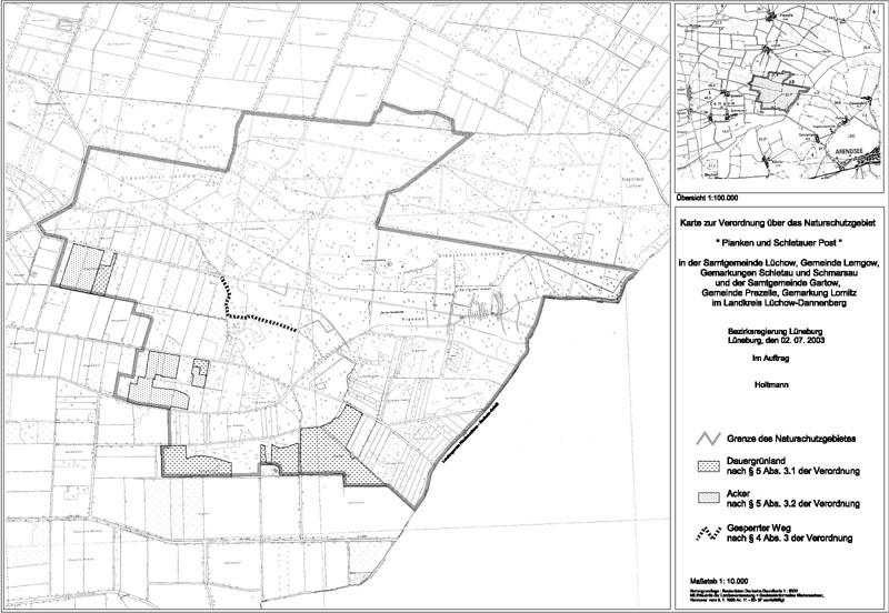 Amtliche Verordnungskarte zum Naturschutzgebiet "Planken und Schletauer Post"