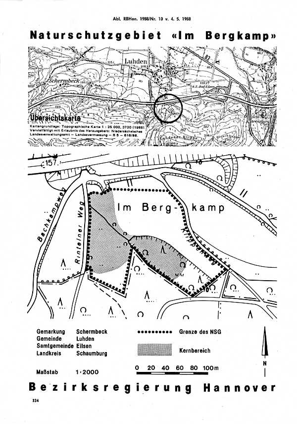 Amtliche Verordnungskarte zum Naturschutzgebiet "Im Bergkamp"