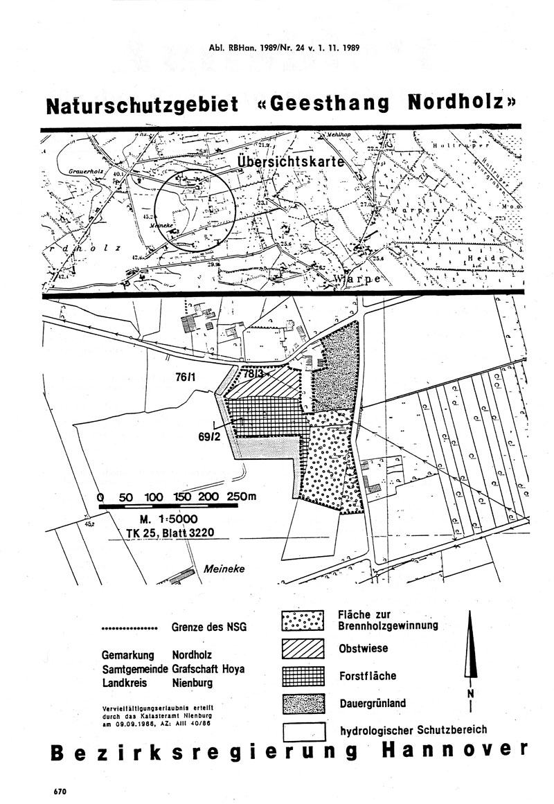 Amtliche Verordnungskarte zum Naturschutzgebiet "Geesthang Nordholz"