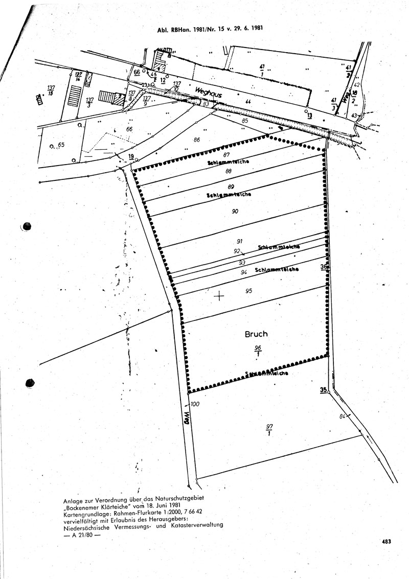 Amtliche Verordnungskarte zum Naturschutzgebiet "Bockenemer Klärteiche"
