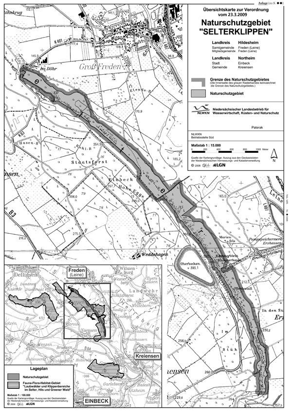 Amtliche Verordnungskarte zum Naturschutzgebiet "Selterklippen"