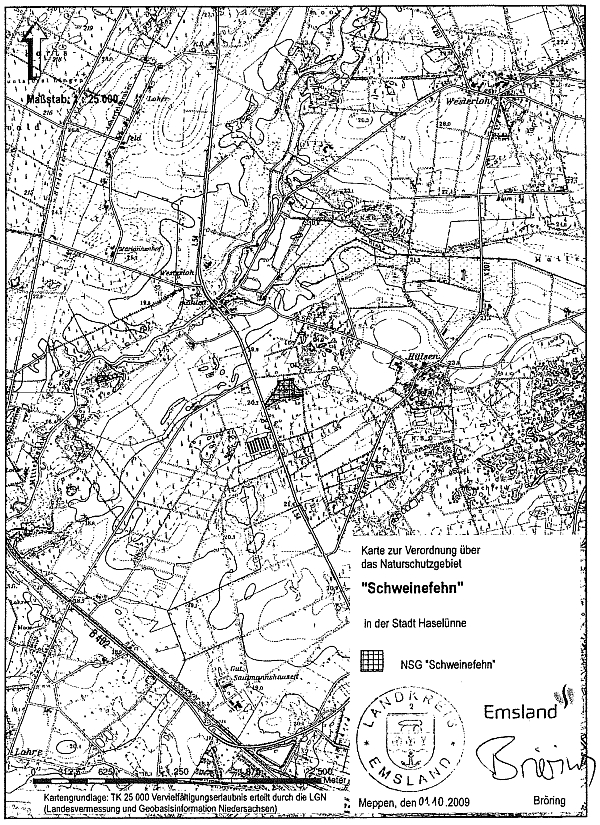 Amtliche Verordnungskarte zum Naturschutzgebiet "Schweinefehn"