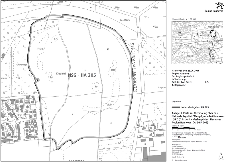 Amtliche Verordnung zum Naturschutzgebiet "Mergelgrube bei Hannover (HPC I)"