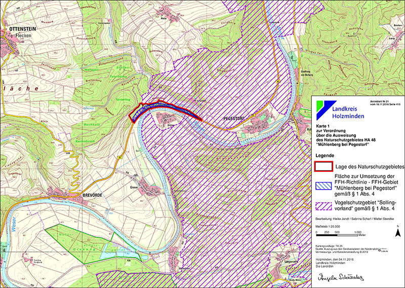Amtliche Verordnung zum Naturschutzgebiet "Mühlenberg bei Pegestorf"