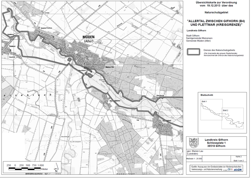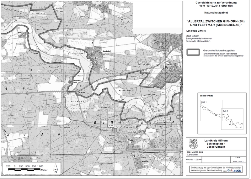 Amtliche Verordnungskarte zum Naturschutzgebiet "Allertal zwischen Gifhorn (B 4) und Flettmar (Kreisgrenze)"