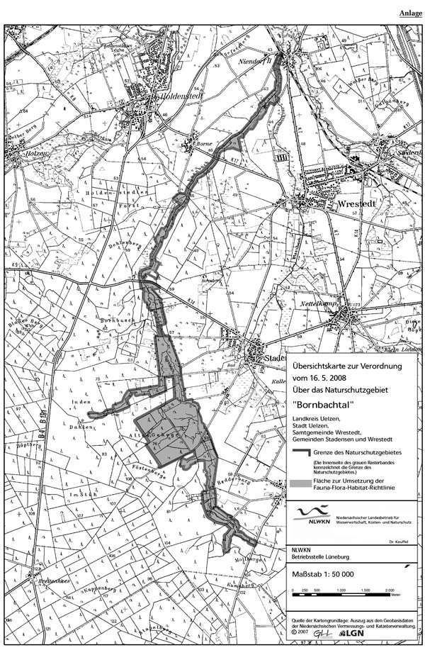 Amtliche Verordnungskarte zum Naturschutzgebiet "Bornbachtal"