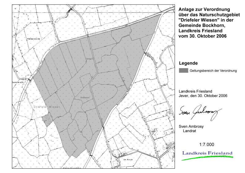 Amtliche Verordnungskarte zum Naturschutzgebiet "Driefeler Wiesen"