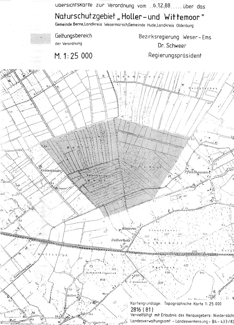 Amtliche Verordnungskarte zum Naturschutzgebiet "Holler- und Wittemoor"