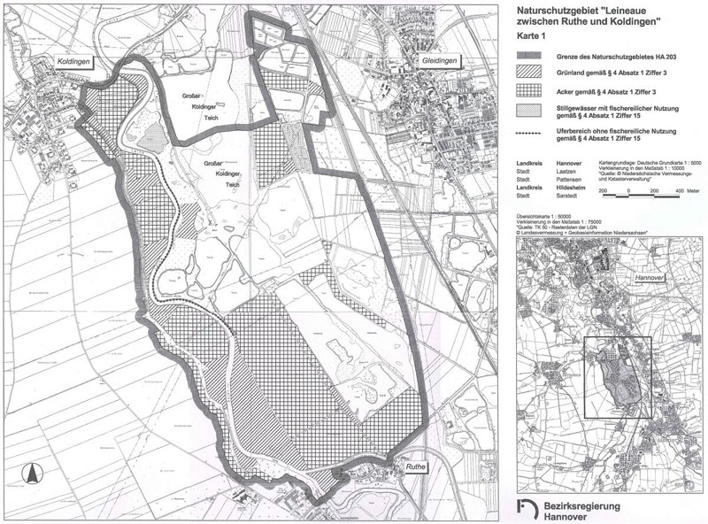 Amtliche Verordnungskarte zum Naturschutzgebiet "Leineaue zwischen Ruthe und Koldingen"