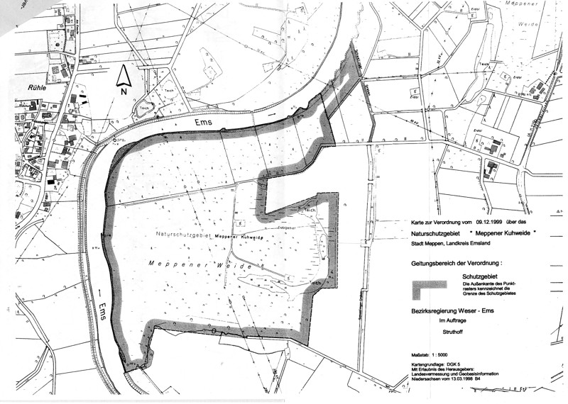 Amtliche Verordnungskarte zum Naturschutzgebiet "Meppener Kuhweide"