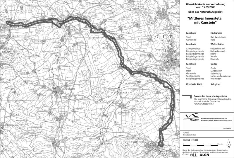 Amtliche Verordnungskarte zum Naturschutzgebiet "Mittleres Innerstetal mit Kanstein"