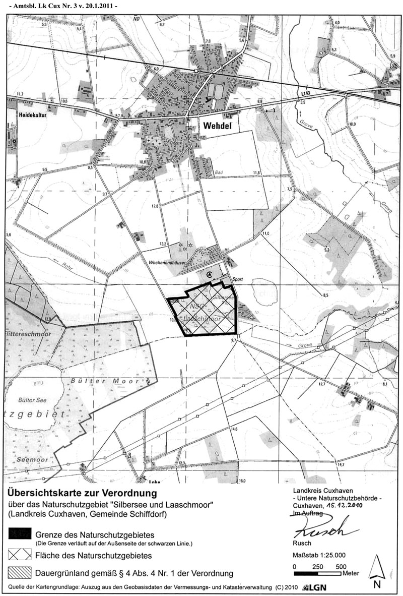 Amtliche Verordnungskarte zum Naturschutzgebiet "Silbersee und Laaschmoor"