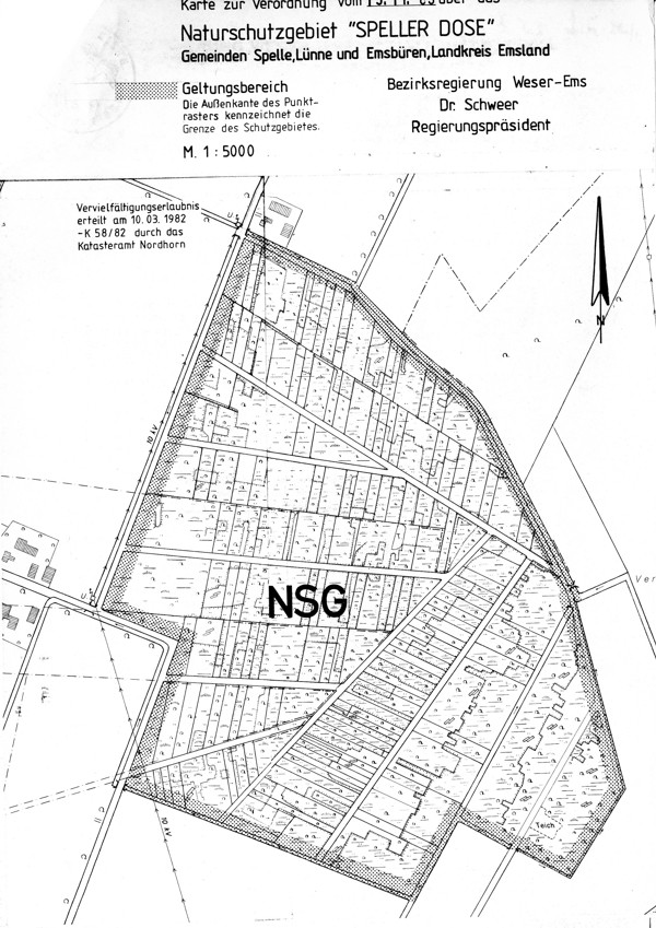 Amtliche Verordnungskarte zum Naturschutzgebiet "Speller Dose"