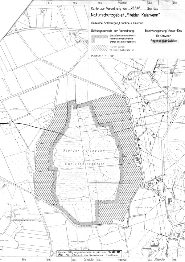 Amtliche Verordnungskarte zum Naturschutzgebiet "Steider Keienvenn"