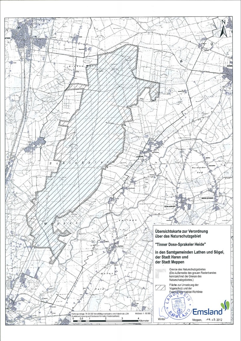 Amtliche Verordnungskarte zum Naturschutzgebiet "Tinner Dose-Sprakeler Heide"