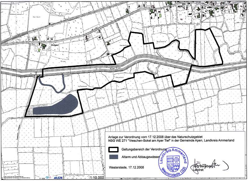 Amtliche Verordnungskarte zum Naturschutzgebiet "Vreschen-Bokel am Aper Tief"