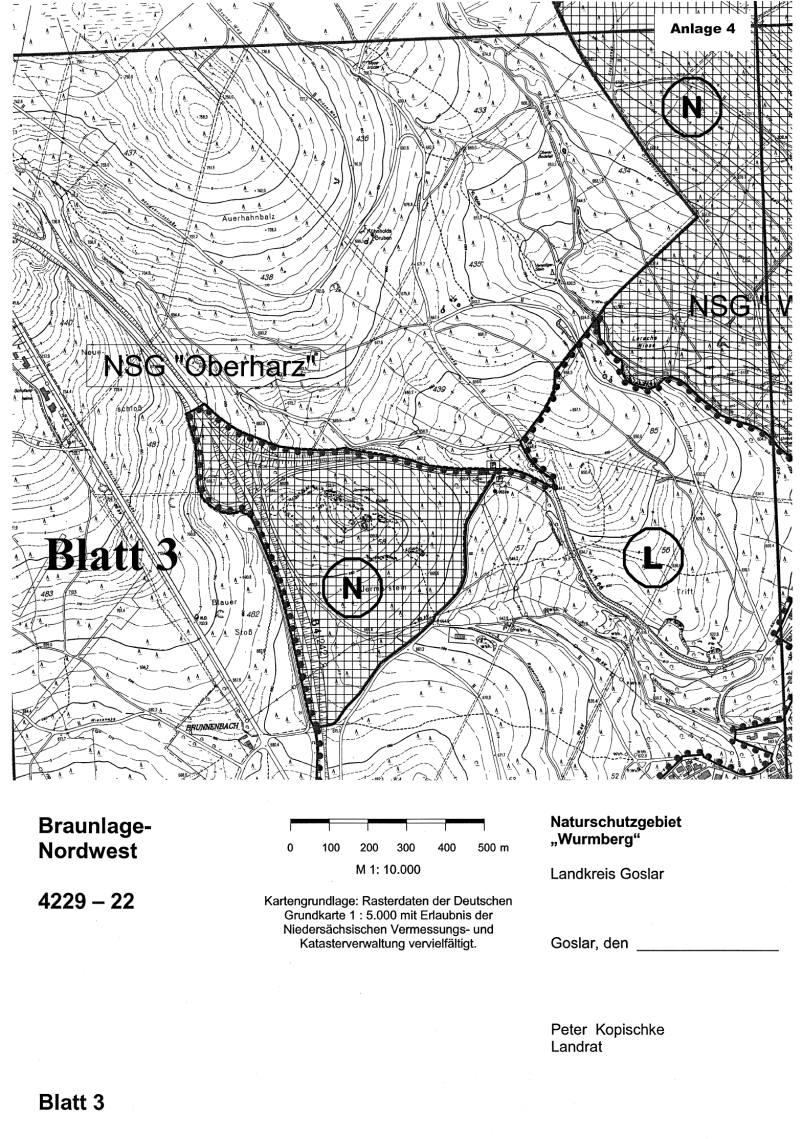 Amtliche Verordnungskarte zum Naturschutzgebiet "Wurmberg"