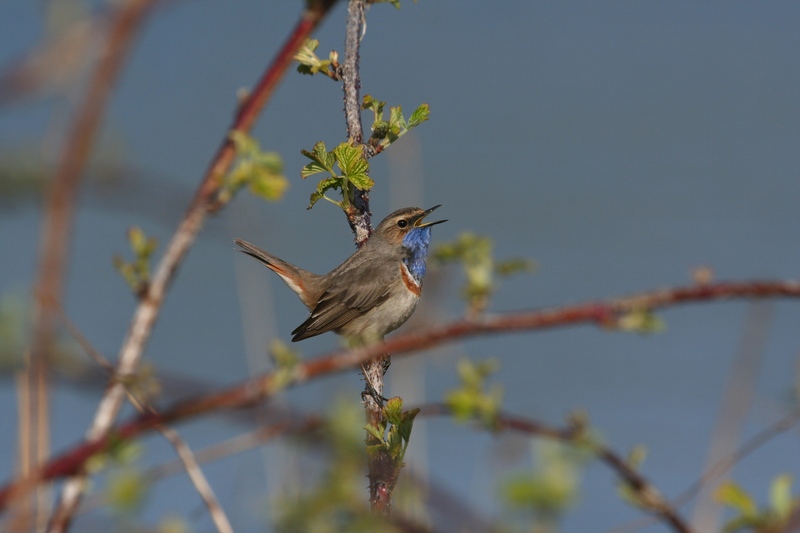In der Knockster Bucht brüten das Blaukehlchen und der Schilfrohrsänger im Röhricht sowie der Rotschenkel auf der Salzwiese.