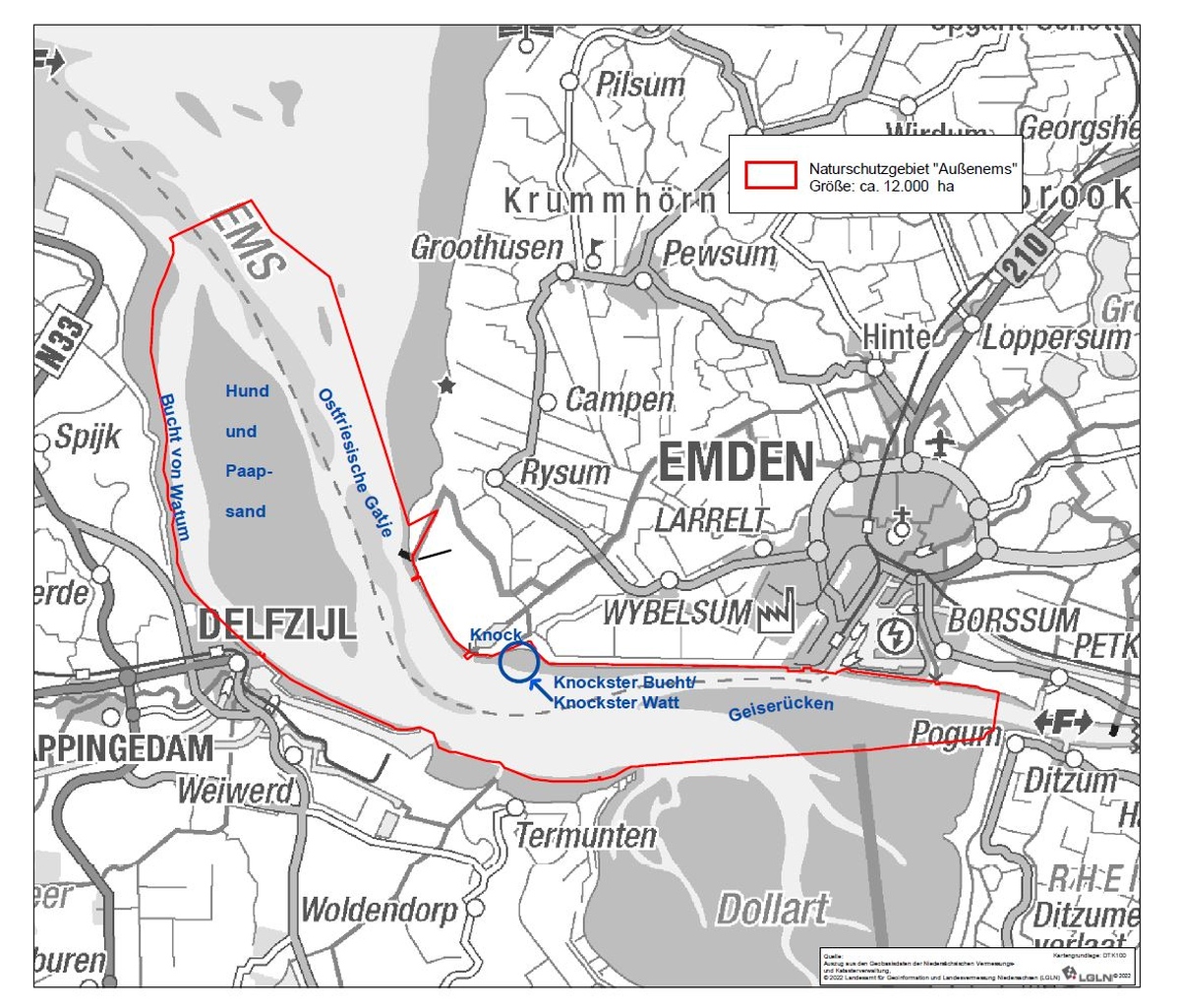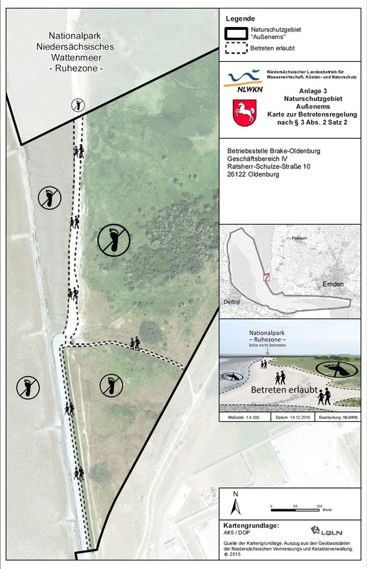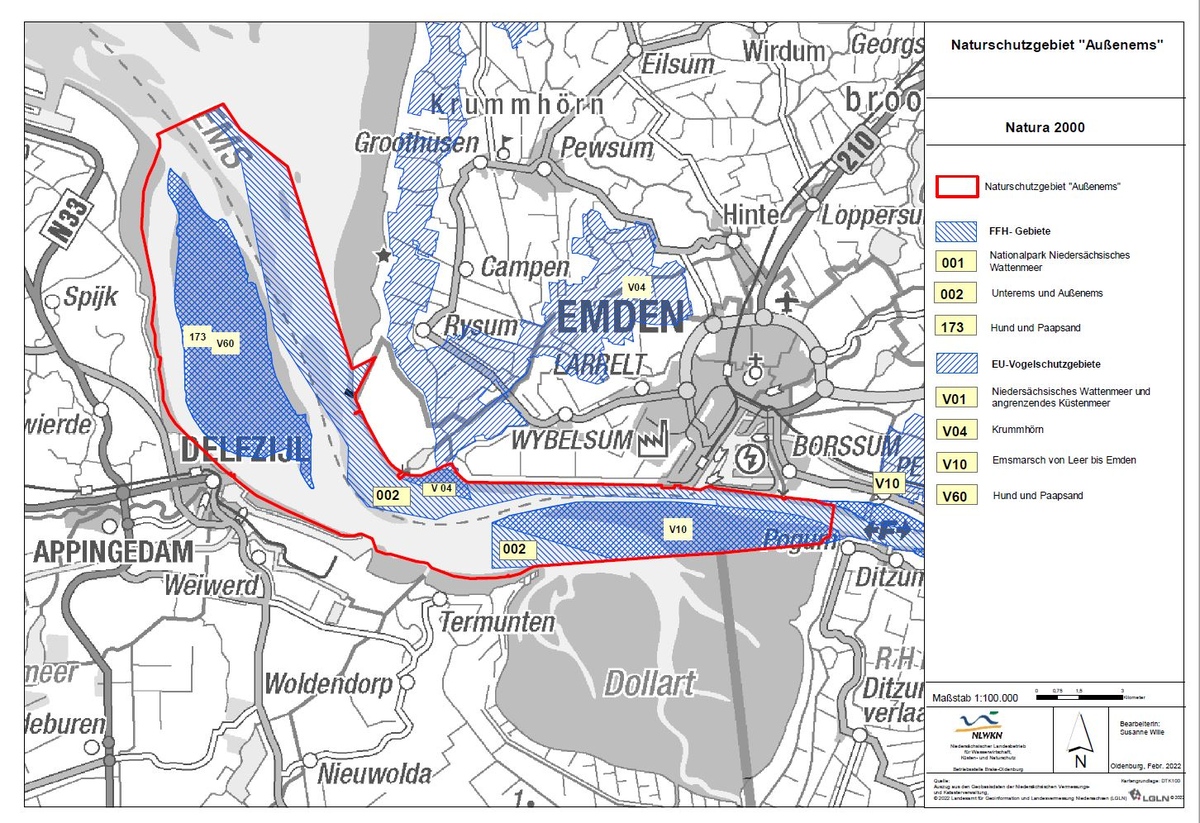 Am 14.Januar 2019 trat die Verordnung über das niedersächsische Naturschutzgebiet (NSG) „Außenems“ in Kraft. Das NSG umfasst eine Fläche von ca. 12.000 ha. Das NSG wurde ausgewiesen, um die charakteristischen und schutzbedürftigen Lebensräume und Arten der Mündung der Außenems in die Nordsee, das äußere Emsästuar, zu schützen und zu entwickeln.