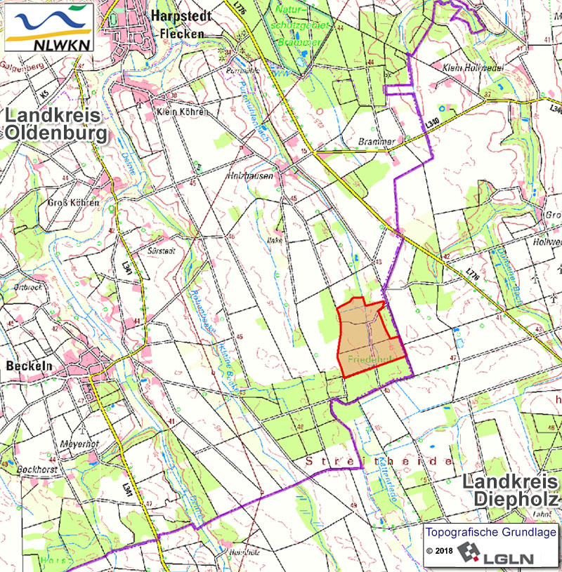 Übersichtskarte der Verordnung des Naturschutzgebietes "Bassumer Friedeholz"   Bildrechte: NLWKN