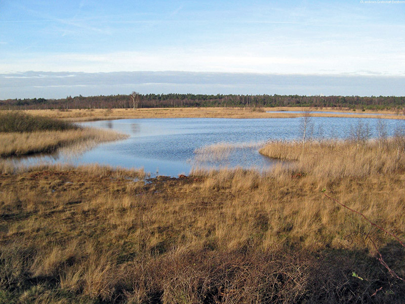 Eine flachere Flugsanderhebung durchschneidet das Moor in ein nordöstliches, mehr von Glockenheide-Anmoor und natürlichen Stillgewässern geprägtes Teilgebiet und in ein südwestliches, mehr von Pfeifengras-Beständen und Torfstichen geprägtes Teilgebiet. Die vielen Gewässer im Gebiet haben sich teilweise in Windausblasungsmulden, sogenannten Schlatts entwickelt, oder sind aus ehemals bäuerlichem Handtorfstich hervorgegangen.