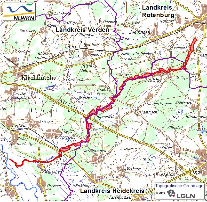 Zuständig sind der Landkreis Verden, der Landkreis Heidekreis und der Landkreis Rotenburg (Wümme) als untere Naturschutzbehörden.Wählen Sie in der Infospalte weitere Informationen über das Gebiet aus...