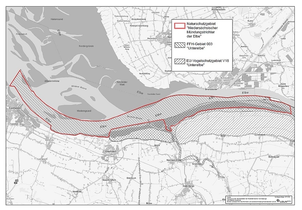 Am 22.November 2018 ist die Verordnung über das Naturschutzgebiet (NSG) „Niedersächsischer Mündungstrichter der Elbe“ in Kraft getreten. Mit der Ausweisung des NSG sollen die charakteristischen und schutzbedürftigen Lebensräume und Arten der Mündung der Elbe in die Nordsee, das äußere Elbästuar, geschützt und entwickelt werden.