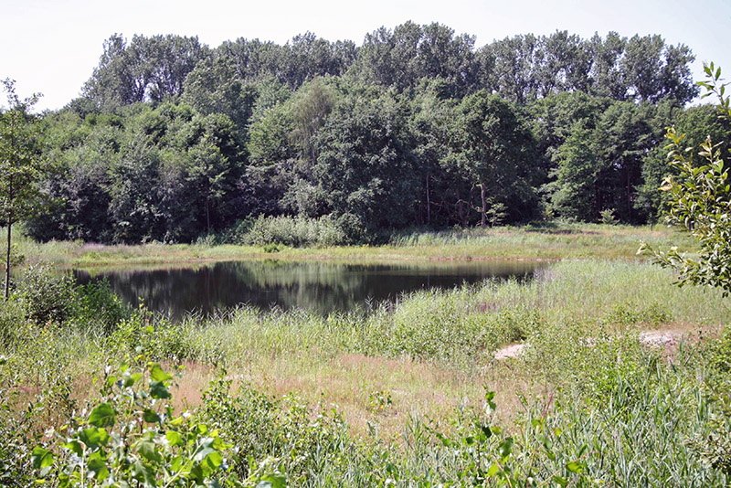 An das Gewässer anschließend befinden sich im Relief leicht bewegte, z. T. abgeschobene, unterschiedlich feuchte und durchweg nährstoffarme Sandflächen mit Pioniervegetation. Der westliche Teil des Gebiets wird von einem Laubwaldkomplex mit Nadelbaumanteil eingenommen.