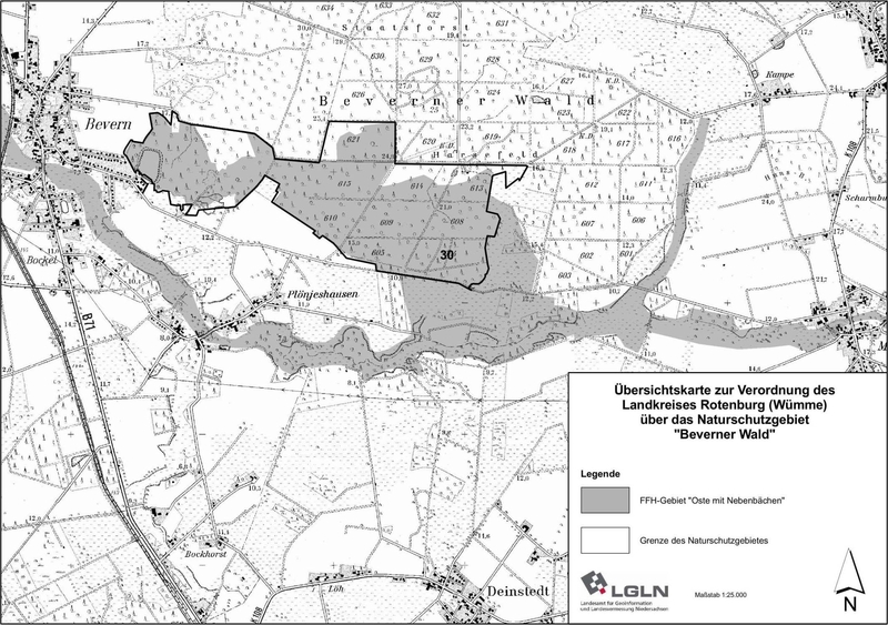 Übersichtskarte der Verordnung des Naturschutzgebiets "Beverner Wald"   Bildrechte: Landkreis Rotenburg (Wümme)