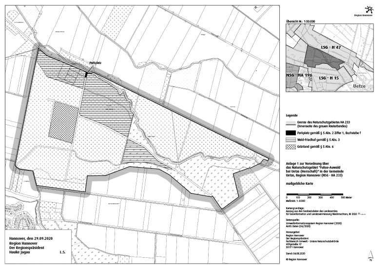 Verordnung zum Naturschutzgebiet "Fuhse-Auwald bei Uetze (Herrschaft)"