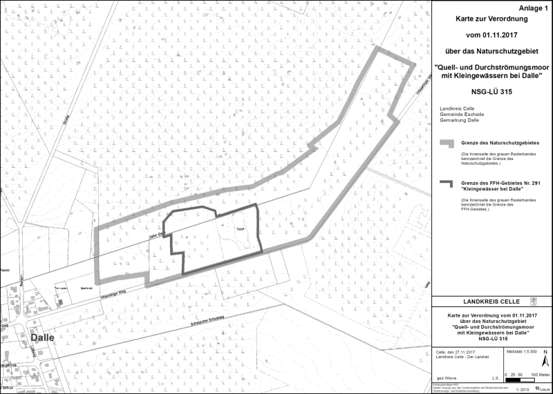 Verordnungskarte des Naturschutzgebietes "Quell- und Durchströmungsmoor mit Kleingewässern bei Dalle"   Bildrechte: Landkreis Celle