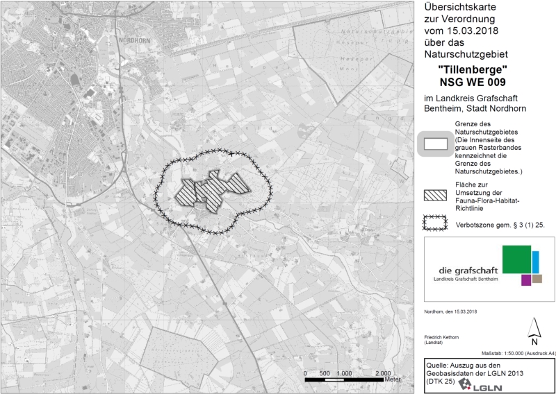 Verordnungskarte des Naturschutzgebietes "Tillenberge"   Bildrechte: Landkreis Grafschaft Bentheim