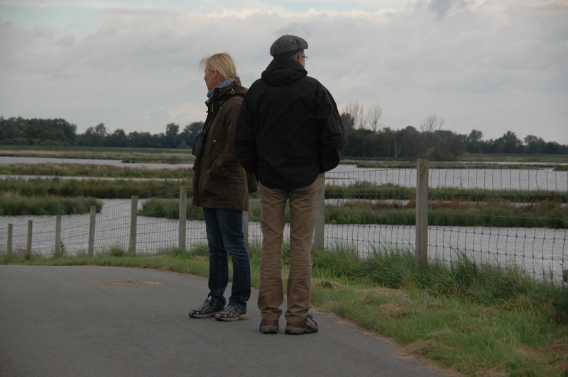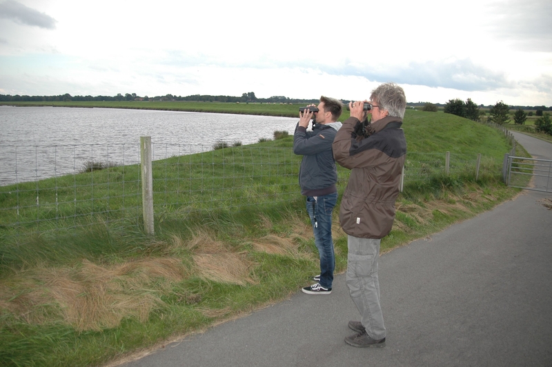 Zunächst wurde vor dem Hintergrund vorhandener Brutvogelhabitate am Emsaltarm Vellage die geplante Anlage eines „Pilot-Tidepolders“ diskutiert. Anschließend ging es in die Leda-Jümme-Niederung. Am Polder Holter Hammrich, inzwischen ein vogelkundlicher „Hotspot“ mit zahlreichen Brut- und Rastvorkommen seltener Arten, überzeugte man sich vom Gelingen eines gemeinsamen Projektes von Hochwasser- und Naturschutz. Wie zur Exkursion bestellt bot sich mit einem über den weiten Wasserflächen jagenden Fischadler ein besonders eindrucksvolles Bild.