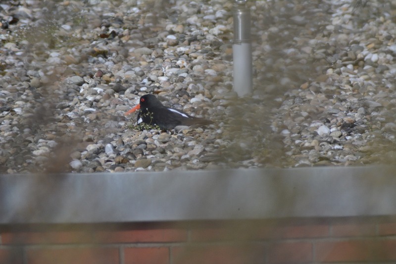 In unmittelbarer Nachbarschaft der Naturschutzstation hat sich ein Paar des Austernfischers eingefunden. Auf dem Flachdach eines vierstöckigen Wohnhauses haben die Vögel eine Mulde im Kies gescharrt und offensichtlich bereits mit dem Brüten begonnen.