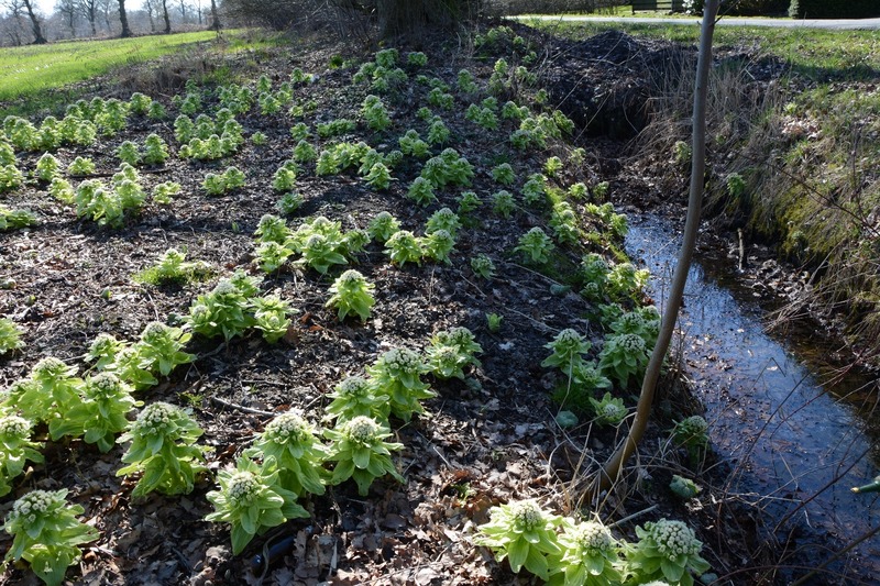 Laut Auskunft der Experten vom landesweiten Naturschutz in Hannover liegt für Niedersachsen bislang erst eine weitere Meldung im Tiefland vor. Die auffällige, feuchtigkeitsliebende Pflanze bildet nach der Blüte im Frühjahr riesige, dekorative Blätter, vermutlich wird sie auch deshalb gelegentlich in Gärten kultiviert. Aus denen ist sie offensichtlich „ausgebüxt" und könnte sich nun entlang der Gräben und Gewässer Ostfrieslands weiter ausbreiten. Auch um dies im Auge zu behalten, wurde der Fund in der zentralen Datenbank des NLWKN vermerkt.