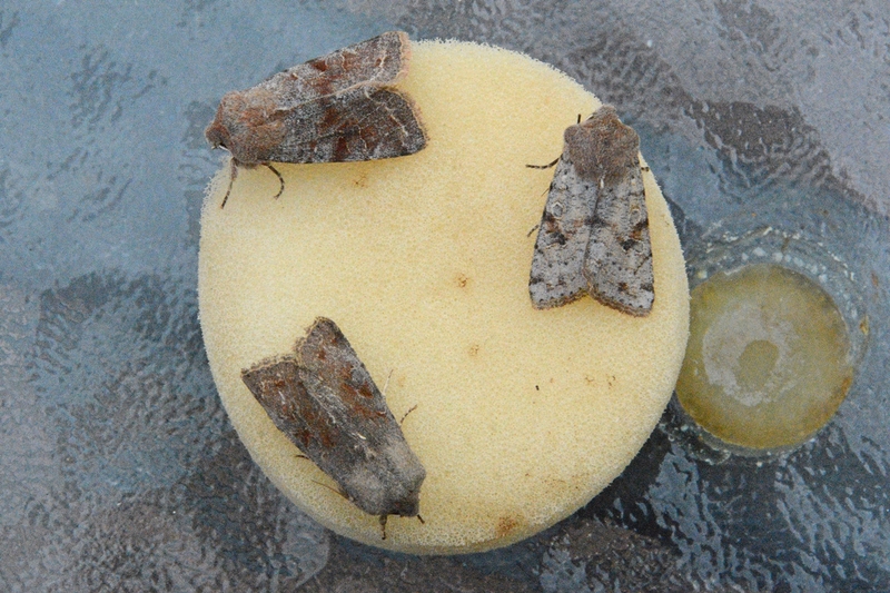 Und so wurden die ersten warmen Aprilnächte genutzt, um an ausgewählten Standorten im Vorland nachtaktive Schmetterlinge aufzuspüren. In den Lebend-Lichtfallen, die Pauschert hierzu am Abend zuvor in Auwäldern entlang der Tideems installiert hatte, fand sich am Mittwochmorgen „reiche Beute": Vor allem charakteristische „Kätzcheneulen" - Nachtfalter, die früh blühende Weidenkätzchen als Nektarquelle besuchen - konnten in mehreren Arten nachgewiesen werden.