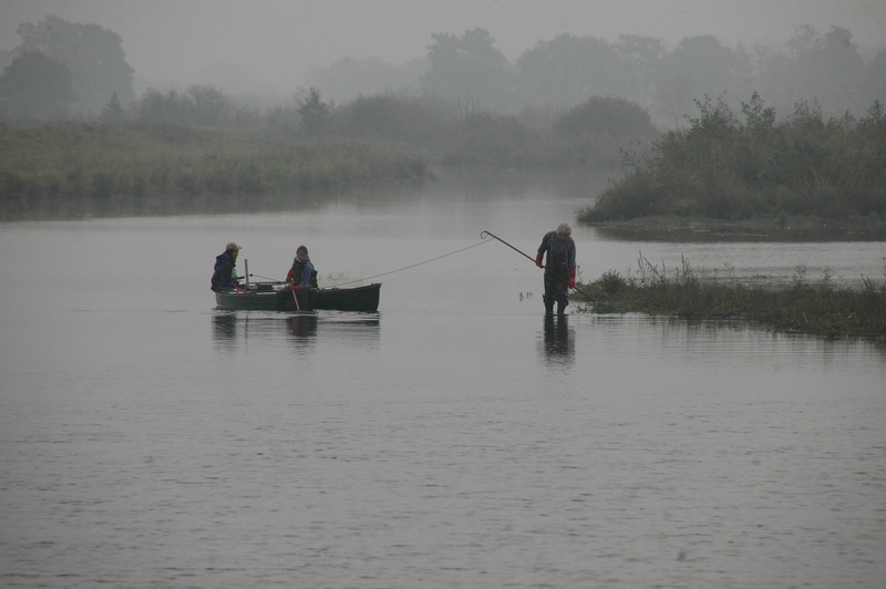 Freitagmorgen, Nebel liegt über dem Aper Tief bei Augustfehn, wo wir uns mit Friedrich Hehmann, Fischexperte aus Osnabrück und seinen Mitarbeitern treffen. Bereits am Tag zuvor hatte das dreiköpfige Team mit der Untersuchung des Fischbestands am Aper Tief begonnen, heute stehen weitere Flussabschnitte an. Die Erhebungen dienen der Überprüfungeiner außergewöhnlichen Naturschutzmaßnahme, die hier im Auftrag des Leda-Jümme-Verbandes von den Leeraner Kollegen im NLWKN geplant und umgesetzt wurde: Im Jahr 2012 hatte man den Deich bei Vreschen Bokel zurückverlegt, seither bieten ca. 40 Hektar neue Überschwemmungsfläche Fortpflanzungs- und Nahrungsbiotop für eine Vielzahl von Tieren.