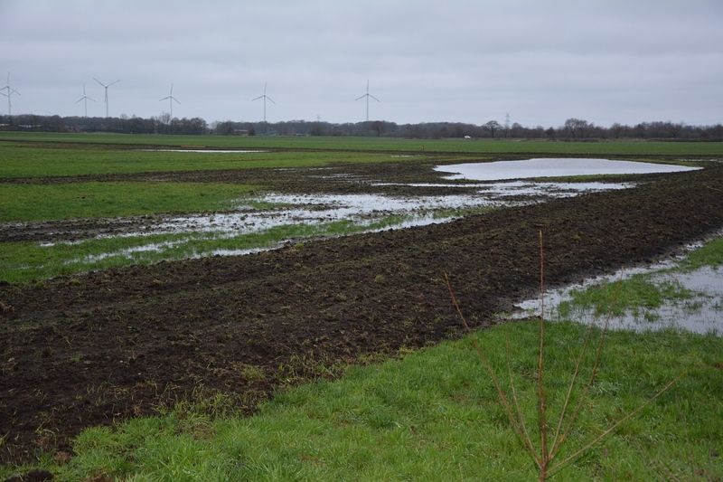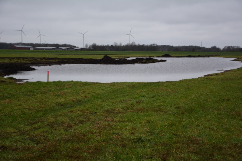 Masterplan Ems 2050: Optimierung von Wiesenvogel-Lebensräumen in Rhede (Ems) zeigt erste ErfolgeDie im Oktober 2020 in Rhede (Ems) begonnene Umsetzung der Maßnahmen des NLWKN zur Optimierung und Wiederherstellung von Lebensräumen für gefährdete Wiesenvögel zeigt erste Erfolge, denn die angelegten Mulden führen bereits Wasser. Somit sind temporäre Flachwasserbereiche (Blänken) vorhanden und nasse bis feuchte Bodenverhältnisse stellen sich ein, die besonders während der Brut- und Aufzuchtzeit für die Wiesenvögel unverzichtbar sind.
