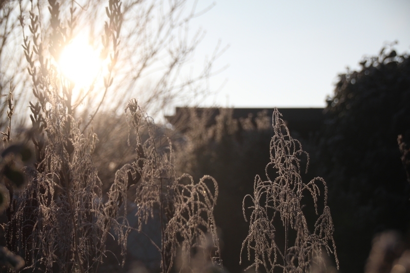 Überjährige Pflanzenreste im Schmetterlingsbeet der Naturschutzstation Ems sehen mit Kristallüberzug im Gegenlicht nicht nur schön aus, sondern dienen auch vielen Insekten als Winterquartier und Kinderstube.
