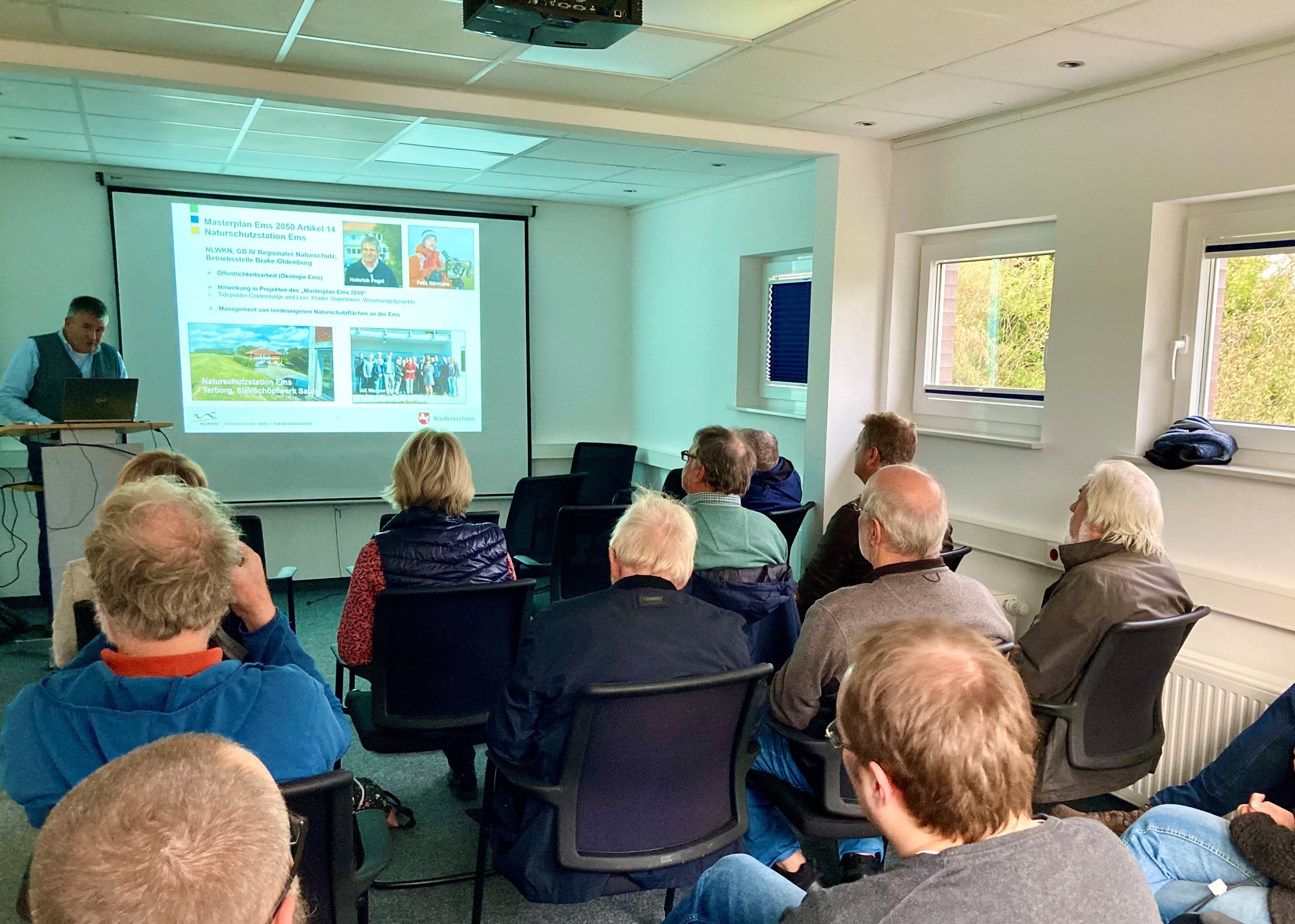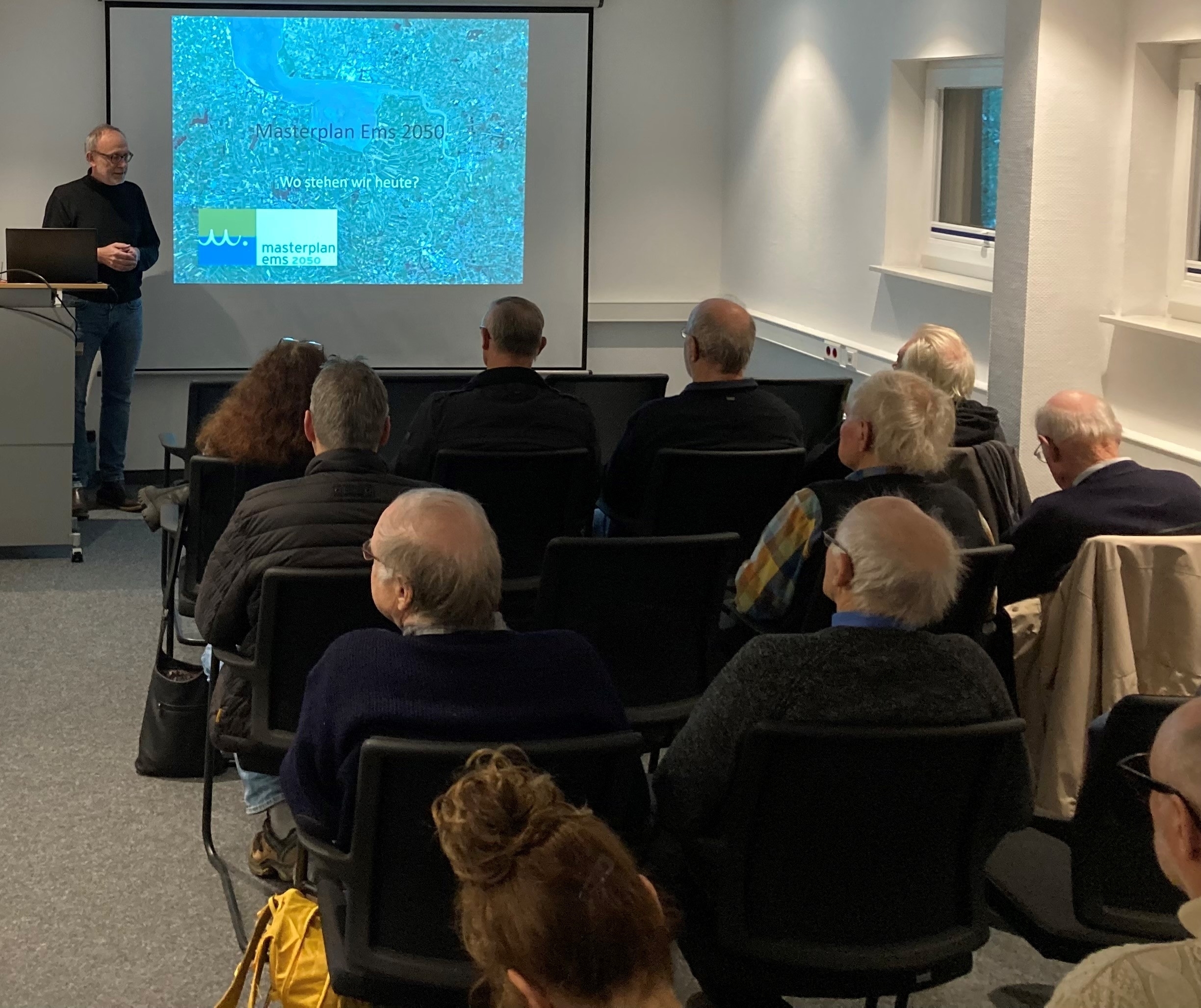 Im Herbst 2023 startete die Vortragsreihe "Masterplan kompakt" in der Naturschutzstation Ems. Zum Auftakt berichtete Heinrich Pegel, Mitarbeiter der Naturschutzstation, von den Wiesenvögelprojekten im Masterplans Ems. Nachdem der Vortrag von Felix Närmann über die ästuartypischen Lebensräume krankheitsbedingt ausfallen musste, gab Thorsten Kuchta, Pressesprecher des Masterplan Ems, einen Überblick über den Stand der Dinge im Masterplan.