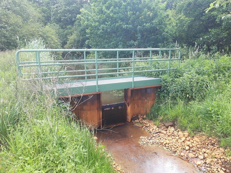 Regulierbares Staubauwerk an einem Graben in der Wümmeniederung bei Ahausen. Zur Entwicklung von artenreichem Feucht- und Nassgrünland müssen der Gebietswasserhaushalt wiederhergestellt werden und der Grundwasserspiegel wieder angehoben werden.