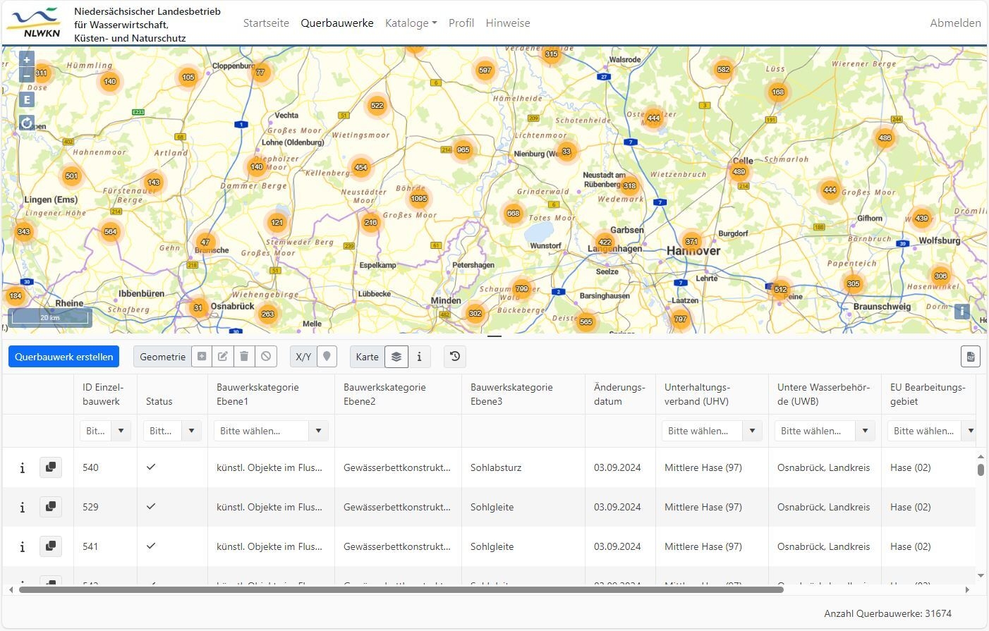 Der landesweite Datenbestand der Querbauwerke in Fließgewässern bildet eine wichtige Datengrundlage für die Bewirtschaftung der Fließgewässer und Ableitung des Maßnahmenbedarfs zur Verbesserung bzw. Wiederherstellung der ökologischen Durchgängigkeit im Sinne der Wasserrahmenrichtlinie (WRRL). Deshalb wurde seit 2021 im Niedersächsischen Landesbetrieb für Wasserwirtschaft, Küsten- und Naturschutz (NLWKN) intensiv daran gearbeitet, die bereits seit Anfang der 2000er Jahre bestehende landesweite Datensammlung zu den Querbauwerken auf eine neue technische Basis zu stellen und die Struktur der Daten zu vereinheitlichen.