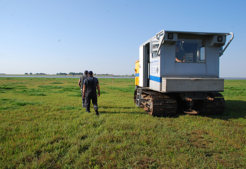 Im Vorfeld hatte ein Mitarbeiter der Naturschutzstation Ems die Fläche begangen und festgestellt, dass das Brutgeschäft im Vorland abgeschlossen ist und dass durch die Bohrungen im August auch keine erheblichen Beeinträchtigungen der Gast- und Rastvögel zu erwarten sind. Bei trockenen Böden waren die Spuren des 20 Tonnen schweren Spezialgeräts aufgrund der breitflächigen Gewichtsverteilung kaum zu sehen. „Eine dauerhafte Schädigung des geschützten Lebensraumes konnte deshalb ausgeschlossen werden“, so Heinrich Pegel von der vom Niedersächsischen Landesbetrieb für Wasserwirtschaft, Küsten- und Naturschutz (NLWKN) betriebenen Schutzstation. Die Überprüfung erfolgte in enger Abstimmung mit der Unteren Naturschutzbehörde der Stadt Emden. Die erste Drucksondierung bis in eine Tiefe von 40 Metern konnte entsprechend durchgeführt werden.