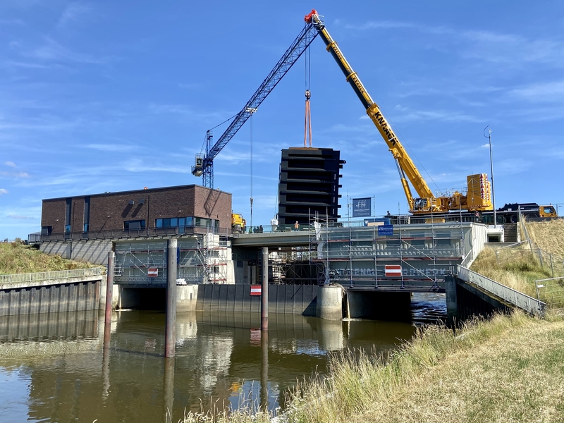 Auf den Einbau des ilmenauseitigen Stemmtorpaars warten die Küstenschützer des NLWKN noch: Verantwortlich für die Verzögerung der weiteren Arbeiten sind weiterhin gestörte Lieferketten und die bereits fortgeschrittene Jahreszeit. (Presseinformation vom 10.08.2022) Bis zum Einbau der neuen Tore bleiben die bestehenden ilmenauseitigen Tore in diesem Winter noch in Betrieb. Im Frühsommer 2023 werden auch diese auf das höhere Schutzniveau gebracht. Ab Mitte April 2023 wird daher die Schifffahrtsöffnung erneut für einige Monate gesperrt werden müssen. Küstenschutzprojekte wie an der Ilmenau können nur im schmalen Zeitfenster der sturmflutfreien Zeit des Sommerhalbjahres vorangetrieben werden.