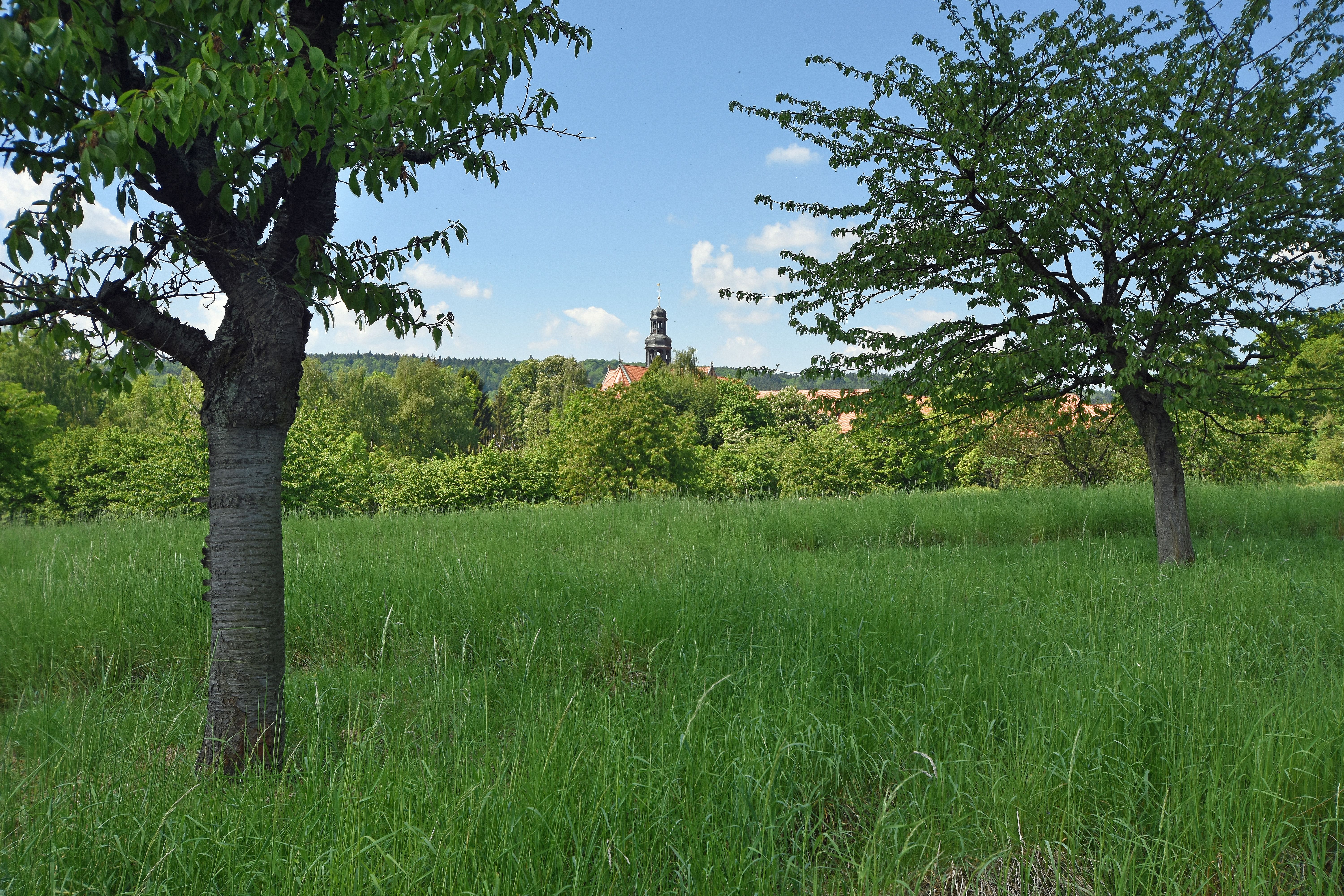 Neuanlage, Erhalt und Pflege von artenreichen, extensiv genutzten, also wenig bis gar nicht gedüngten und selten gemähten Wiesen oder Weiden mit hochstämmigen Obstbäumen, sogenannte Streuobstwiesen, bieten Insekten unterschiedliche Teillebensräume in enger Verzahnung. Bei der Pflanzung neuer Obstbäume sollten möglichst verschiedene, auch regionale Obstsorten einbezogen werden. Sie haben zudem den Vorteil, dass sie mit ihren unterschiedlichen Blütezeiten besonders lange Nektar und Pollen bieten. Abgestorbene Obstbäume oder Äste sollten als Fortpflanzungsstätte für Bienen oder holzbewohnende Käfer möglichst in der Fläche verbleiben oder an einem sonnigen Ort abgelagert werden
