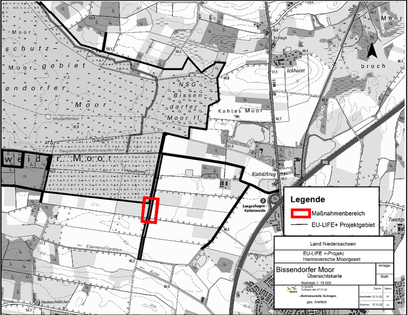 2012 hat die EU-Kommission das LIFE+-Projekt „Hannoversche Moorgeest“ mit einer Laufzeit von elf Jahren bewilligt, damit vier Hochmoore in der Region Hannover wiedervernässt werden können. 58 Prozent der Gesamtkosten von 14,75 Millionen Euro trägt die EU, 35 Prozent das Land Niedersachsen und sieben Prozent die Projektpartnerin Region Hannover. Die Federführung für die Umsetzung des Projekts liegt beim Niedersächsischen Ministerium für Umwelt, Energie, Bauen und Klimaschutz (MU). Dieses hat den Niedersächsischen Landesbetrieb für Wasserwirtschaft, Küsten- und Naturschutz (NLWKN) mit der Gesamtkoordination und Umsetzung des Projekts beauftragt. Bei der Planung und Umsetzung des Projekts arbeiten die Bereiche Naturschutz und Wasserwirtschaft des NLWKN Hand in Hand. Die Region Hannover bringt sich personell, finanziell und im Zuge der Maßnahmenumsetzung ein.