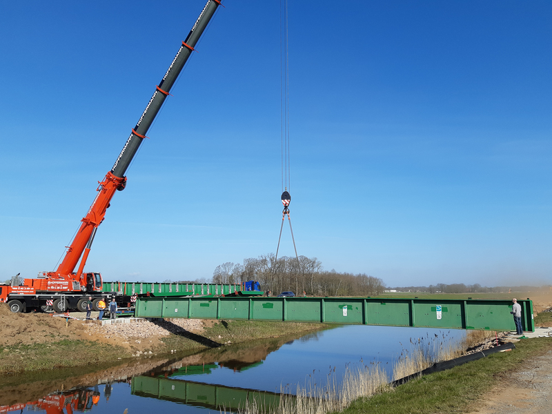 Projektleiter Karsten Hüsing vom Niedersächsischen Landesbetrieb für Wasserwirtschaft, Küsten- und Naturschutz (NLWKN) in Cloppenburg blickt zum Jahresbeginn auf einen ereignisreichen vierten Bauabschnitt zurück: So musste in 2020 für den Transport von 60.000 Tonnen Baumaterial und Erdaushub eigens eine spezielle Baubehelfsbrücke über die Gehobene Hase errichtet werden. Auch die Überlaufschwelle südlich der Schleuse II in Badbergen konnte inzwischen hergestellt werden. „Damit sind die Arbeiten an den wesentlichen Elementen des neuen Hochwasserschutzes nun abgeschlossen. Das Schutzniveau für die Region ist künftig erheblich verbessert“, betont Hüsing. In den kommenden Monaten sind noch letzte Restarbeiten auf der Vorhabenfläche erforderlich.