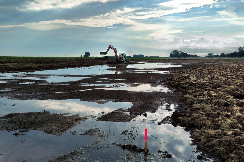 Die zurzeit laufenden Erd- und Wasserbauarbeiten sollen dazu beitragen, den Wasserhaushalt der feuchten Grünländer in den Bornhorster Hunteweisen optimal an die Anforderungen von Wiesenbrütern anzupassen. Denn Wiesenbrüter bevorzugen als Brutlebensraum periodisch überflutete, weiträumig offene und störungsarme Wiesen und Weiden – wie in den Huntewiesen. „Das eingedeichte Gelände dient nicht nur als sogenannter Überflutungspolder für die Hochwassersicherheit der Stadt Oldenburg, sondern ist auch das bedeutendste Brutgebiet für seltene und gefährdete Wiesenvogelarten in der Region – und ein Vogelrastplatz von internationaler Bedeutung“, betont Gebietsbetreuer Joachim Schwane vom NLWKN. Die eng mit den zuständigen Naturschutz- und Wasserbehörden abgestimmten aktuellen Arbeiten, die bereits im August begonnen haben, erfolgen im Auftrag des Landesbetriebs. Sie werden durch Mitarbeitende des EU-Vogelschutzprojektes LIFE IP GrassBirdHabitats betreut.