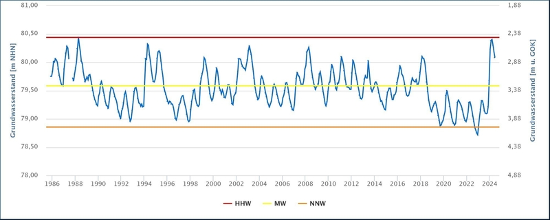 Die feuchten Witterungsverhältnisse im Jahr 2023 und im Winter 2023/2024 führen zwar im Sommer 2024 zu deutlichen Erholungen der Grundwasserstände. Die zu erwartenden Folgen des Klimawandels geben jedoch weiter Anlass zur Sorge und erfordern landesweite und regionale Anpassungsstrategien.